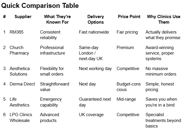 Finding a wholesaler you can actually rely on makes the difference between running a smooth operation and constantly firefighting supply problems. The UK market is absolutely saturated with companies claiming to be the best choice for professional injectables, and honestly, a lot of them are making promises they can't keep. Some have great websites but terrible logistics. Others offer rock-bottom prices on products with questionable provenance. A few are genuinely excellent but expensive. Most fall somewhere in the mediocre middle.