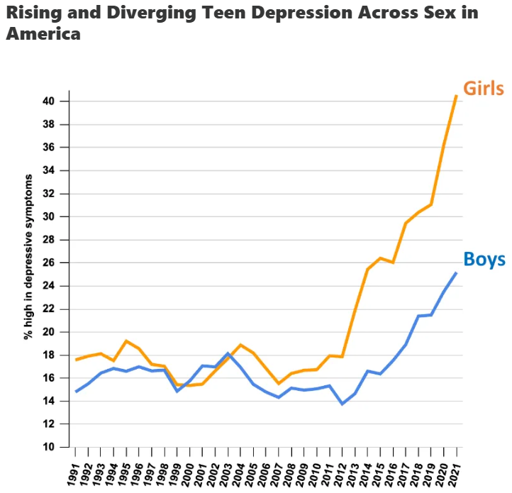 Data spanning the past decade show that teen depression increased across nearly all demographic categories, including rural and urban settings, different racial groups, and both higher and lower socioeconomic status. Between 2015 and 2021, depression rose among both LGB and straight teens, and the most pronounced divergence appeared between boys and girls, with girls showing sharper increases.